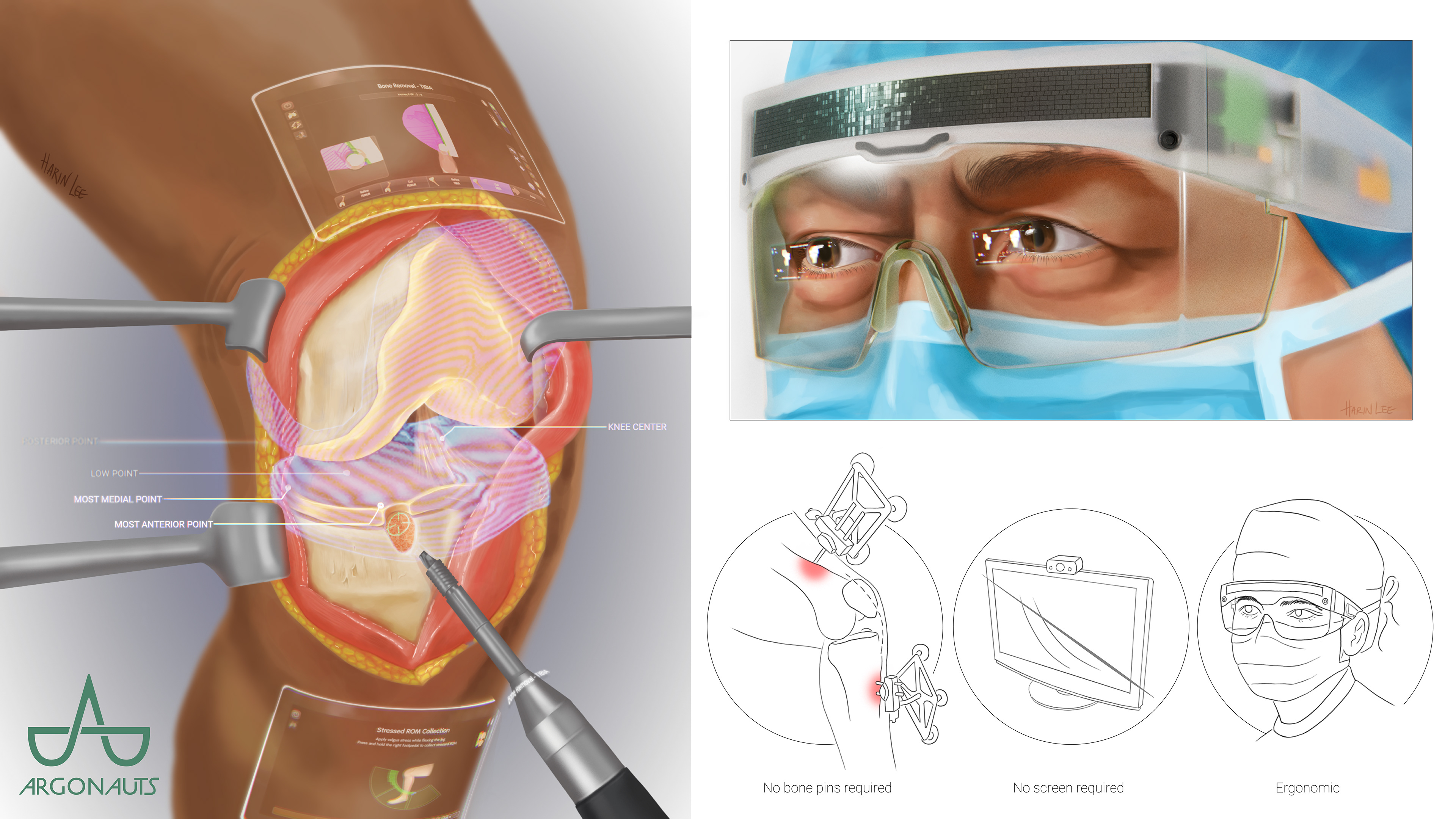 Supplementary illustration created for a grant proposal for holographic overlay glasses to assist robotic surgery. I also designed a custom logo.